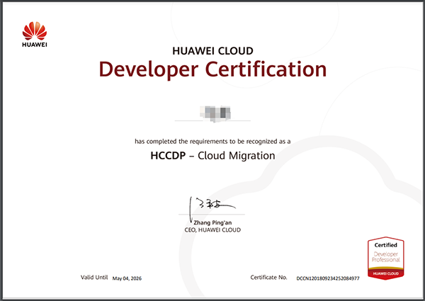 经过培训赋能和考试认证,讯方技术华为云事业部已有18人获取华为云开发者-云迁移HCDDP-Cloud Migration证书。